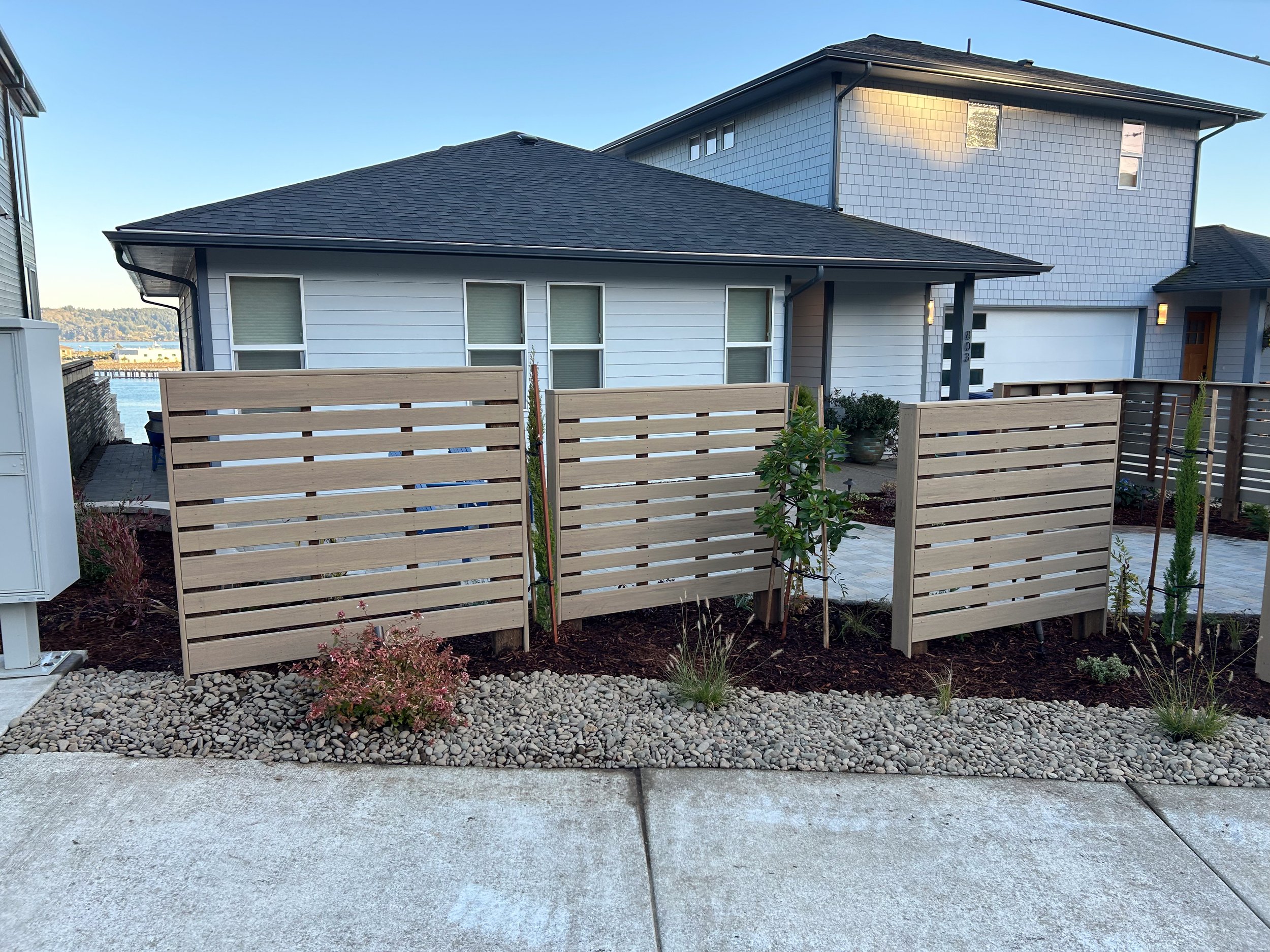 Newport - We’ve been working on giving the front and back yards a full refresh — blending privacy, function, and coastal durability. TimberTech staggered fence panels now provide a clean, modern privacy screen that holds up to the weather, while a new Belgard paver patio and stone garden walls help define the outdoor space with purpose.